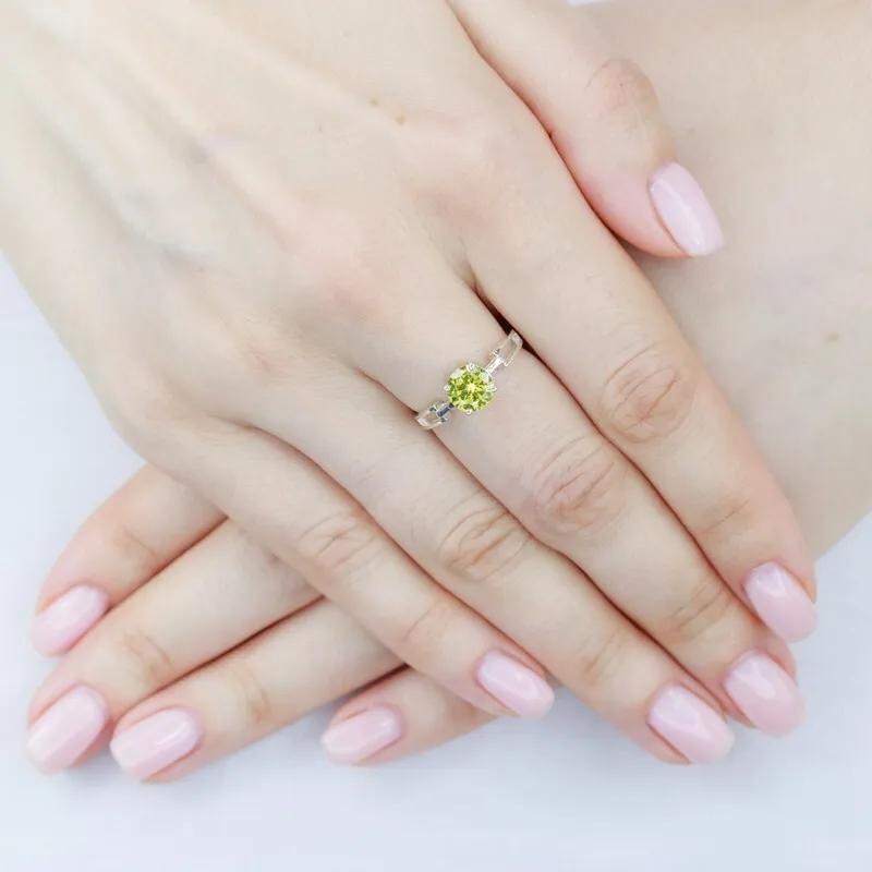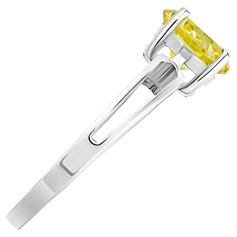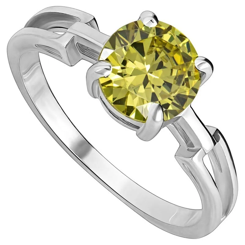 Серебряное кольцо с нанокристаллом, цвет желтый - коллекция Классик / покрытие Белый Родий
