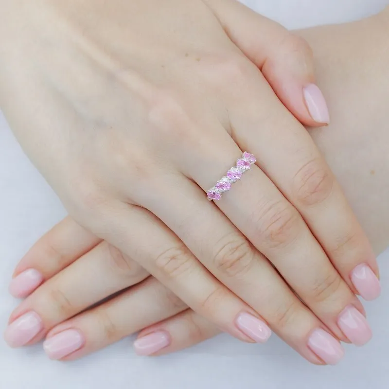 Серебряное кольцо с нанокристаллом, цвет розовый - коллекция Колосок. Средний вес изделия с камнями 2.24 гр. Размер главного камня: овал 3*5 мм. Нанокристалл - синтезированный ювелирный нанокристалл, превосходящий по блеску, преломлению света, твердости, плотности простой фианит. Все изделия собственного производства, гарантия 12 месяцев. Арт. 8257