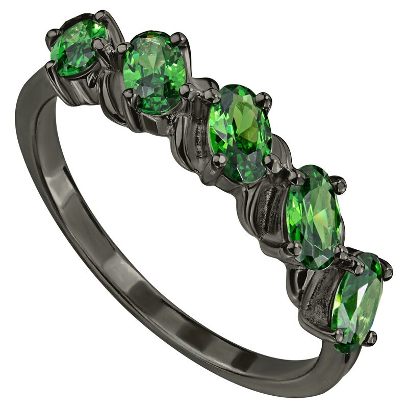 Серебряное кольцо с нанокристаллом, цвет зеленый изумруд - коллекция Колосок, покрытие Черный Родий.