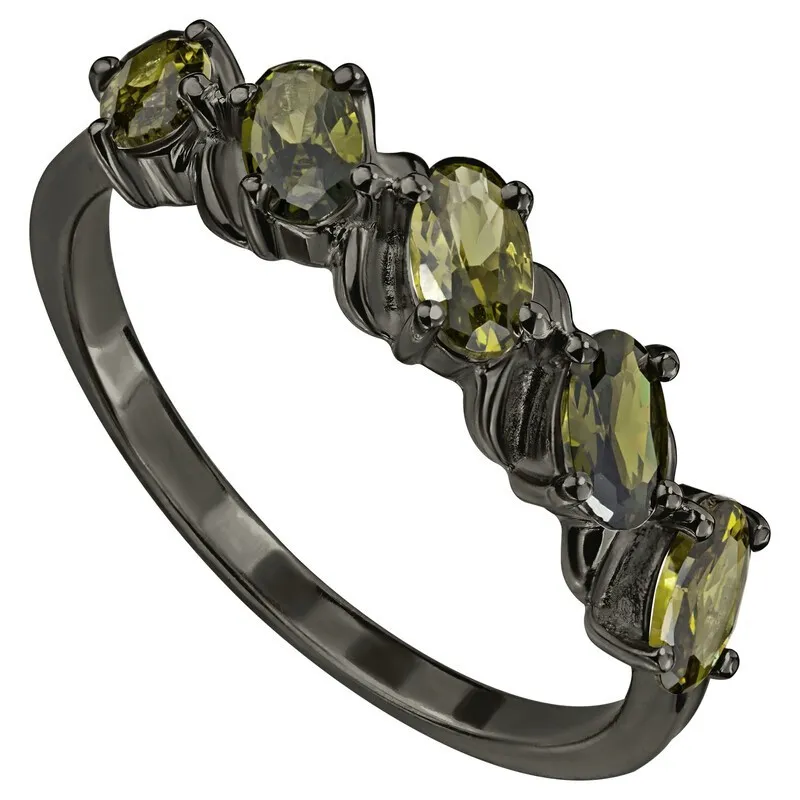 Серебряное кольцо с нанокристаллом, цвет оливковый - коллекция Колосок, покрытие Черный Родий.
