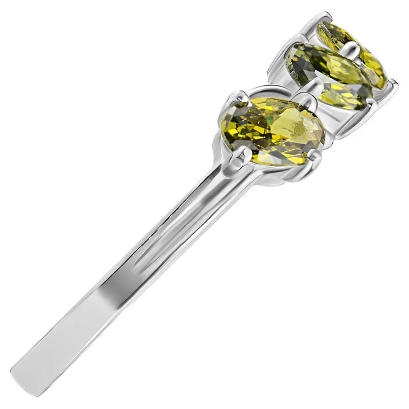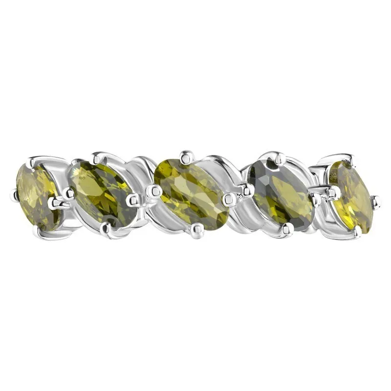 Серебряное кольцо с нанокристаллом, цвет оливковый - коллекция Колосок. Средний вес изделия с камнями 2.24 гр. Размер главного камня: овал 3*5 мм. Нанокристалл - синтезированный ювелирный нанокристалл, превосходящий по блеску, преломлению света, твердости, плотности простой фианит. Все изделия собственного производства, гарантия 12 месяцев. Арт. 8261