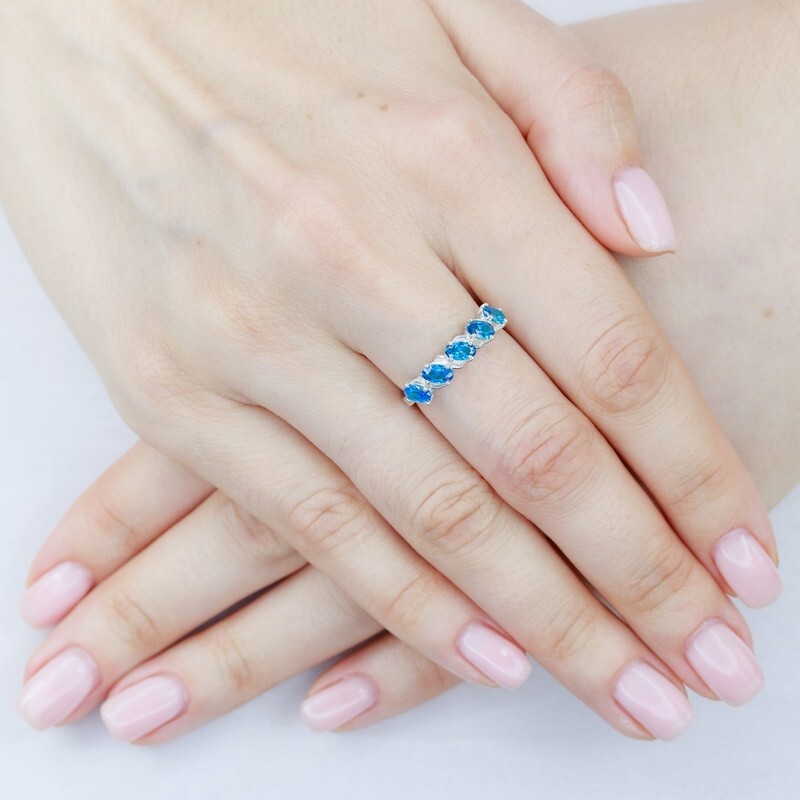 Серебряное кольцо с нанокристаллом, цвет голубой топаз - коллекция Колосок. Средний вес изделия с камнями 2.24 гр. Размер главного камня: овал 3*5 мм. Нанокристалл - синтезированный ювелирный нанокристалл, превосходящий по блеску, преломлению света, твердости, плотности простой фианит. Все изделия собственного производства, гарантия 12 месяцев. Арт. 8262