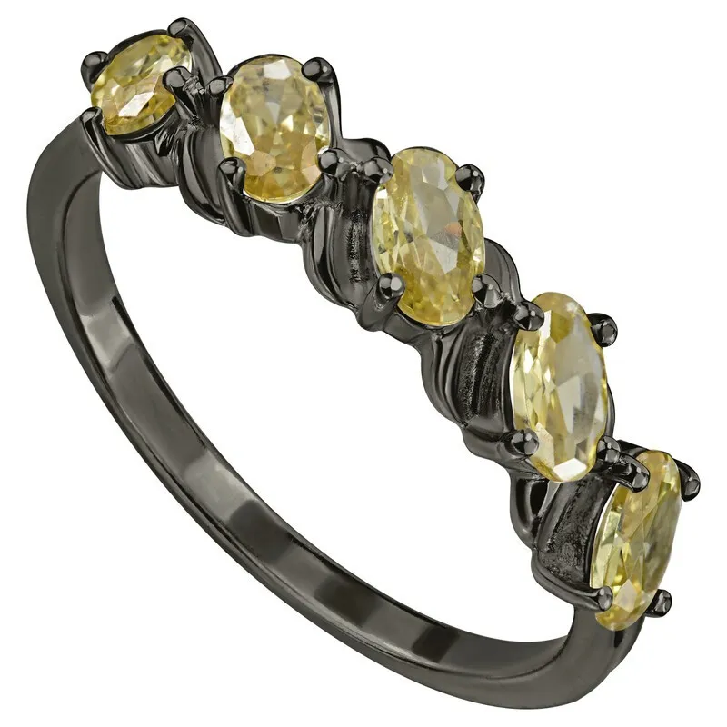 Серебряное кольцо с нанокристаллом, цвет желтый - коллекция Колосок, покрытие Черный Родий.