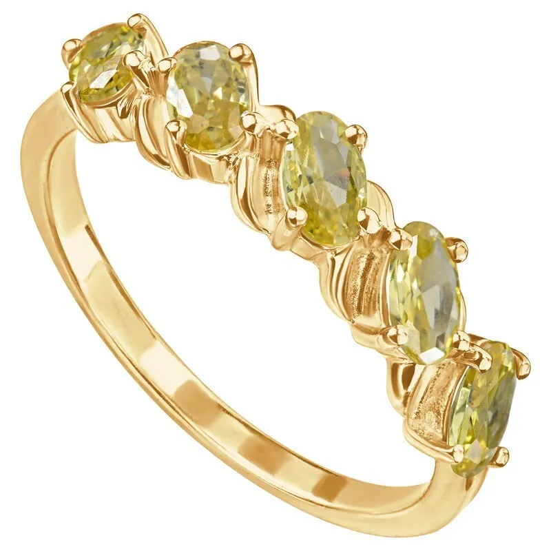 Серебряное кольцо с нанокристаллом, цвет желтый - коллекция Колосок. Серебряное кольцо 925 пробы с покрытием желтое золото. Цвет покрытия соответствует швейцарскому цветовому стандарту NIHS -FF24ct и цвету чистого золото 999.99. На последней фотографии мы разместили сравнительную фотографию 3 цвета золотого покрытия. Помимо предания золотого цвета Вашему изделию, тонкий слой золота защищает от окисления. Для более стойкого эффекта золочения и долговечности покрытия мы дополнительно наносим подслой палладия (Pd). Средний вес изделия с камнями 2.24 гр. Размер главного камня: овал 3*5 мм. Нанокристалл - синтезированный ювелирный нанокристалл, превосходящий по блеску, преломлению света, твердости, плотности простой фианит. Все изделия собственного производства, гарантия 12 месяцев. Арт. 8263