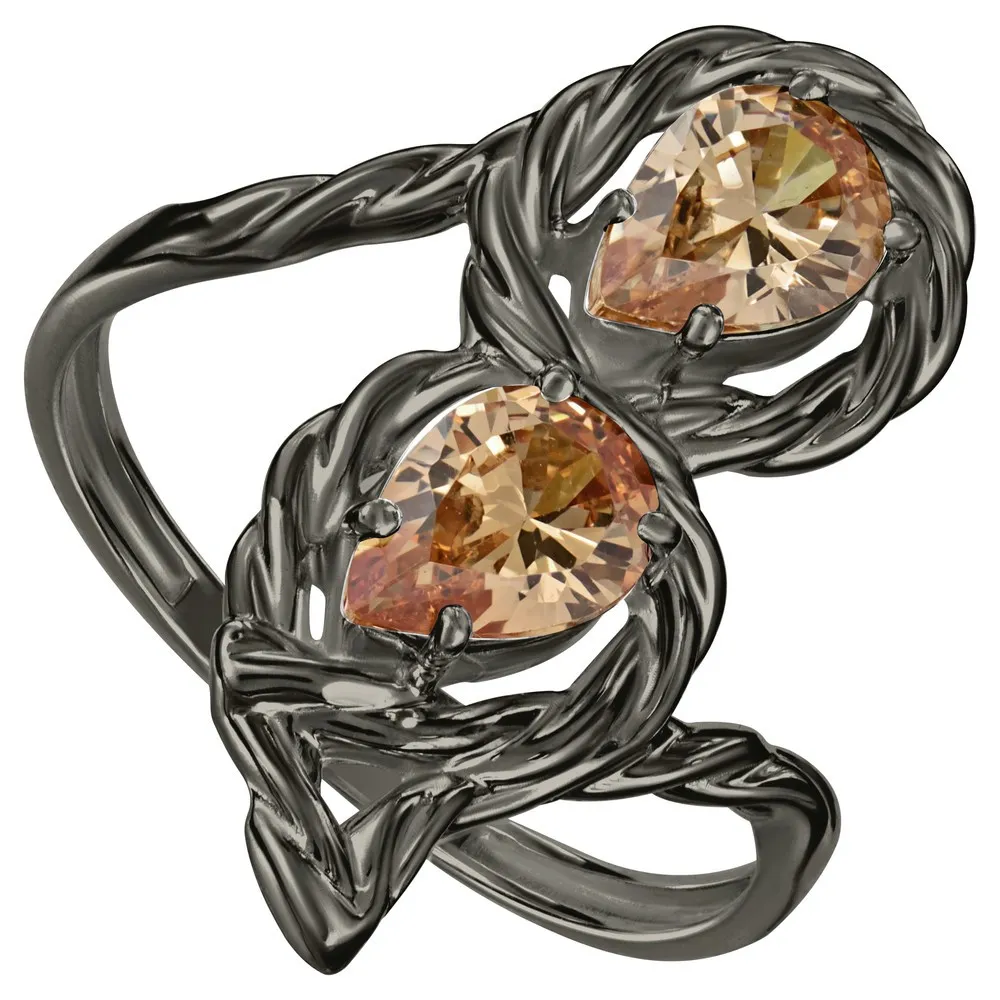 Серебряное кольцо с нанокристаллом, цвет персиковый - коллекция Ривьера, покрытие Черный Родий.