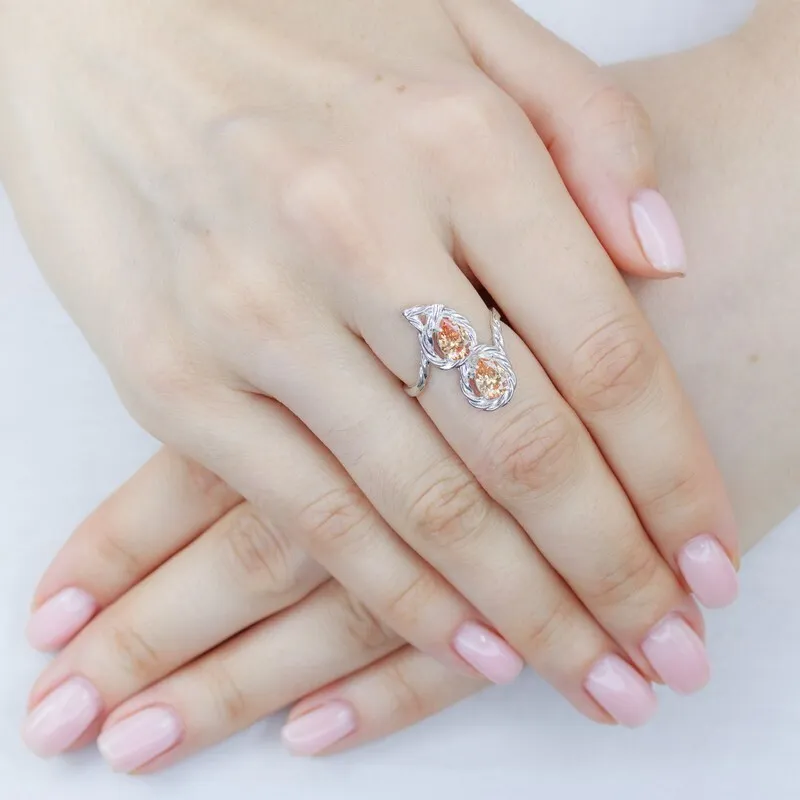 Серебряное кольцо с нанокристаллом, цвет персиковый - коллекция Ривьера / покрытие Белый Родий