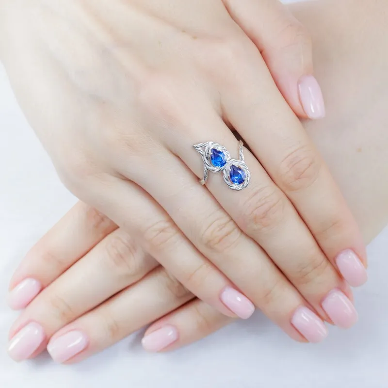 Серебряное кольцо с нанокристаллом, цвет синий сапфир - коллекция Ривьера. Средний вес изделия с камнями 2.78 гр. Размер главного камня: груша 5*7 мм. Нанокристалл - синтезированный ювелирный нанокристалл, превосходящий по блеску, преломлению света, твердости, плотности простой фианит. Все изделия собственного производства, гарантия 12 месяцев. Арт. 8269