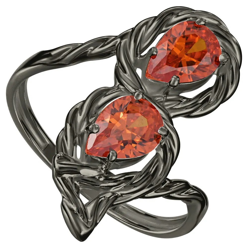 Серебряное кольцо с нанокристаллом, цвет оранжевый - коллекция Ривьера, покрытие Черный Родий.