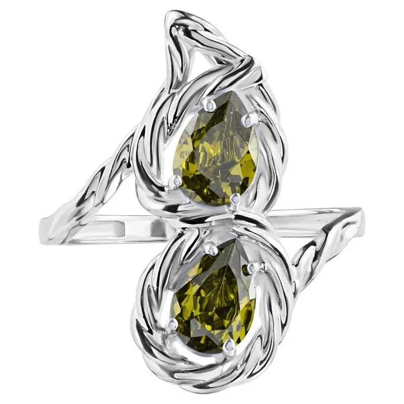 Серебряное кольцо с нанокристаллом, цвет оливковый - коллекция Ривьера. Средний вес изделия с камнями 2.78 гр. Размер главного камня: груша 5*7 мм. Нанокристалл - синтезированный ювелирный нанокристалл, превосходящий по блеску, преломлению света, твердости, плотности простой фианит. Все изделия собственного производства, гарантия 12 месяцев. Арт. 8272