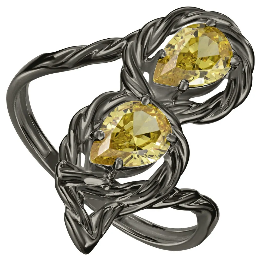 Серебряное кольцо с нанокристаллом, цвет желтый - коллекция Ривьера, покрытие Черный Родий.