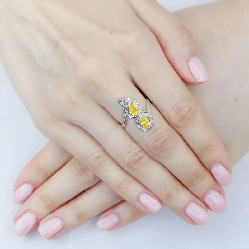 Серебряное кольцо с нанокристаллом, цвет желтый - коллекция Ривьера / покрытие Белый Родий