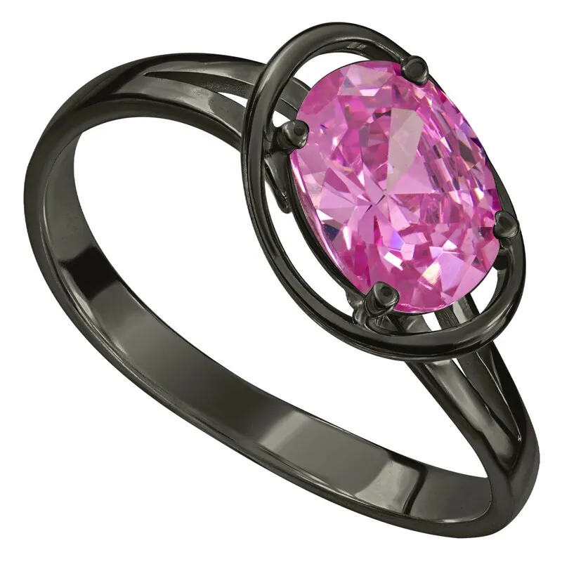 Серебряное кольцо с нанокристаллом, цвет розовый - коллекция Фрейя, покрытие Черный Родий.