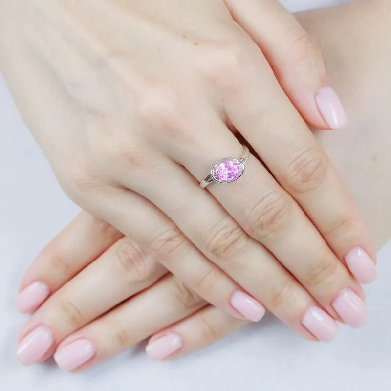 Серебряное кольцо с нанокристаллом, цвет розовый - коллекция Фрейя. Средний вес изделия с камнями 2.13 гр. Размер главного камня: овал 6*8 мм. Нанокристалл - синтезированный ювелирный нанокристалл, превосходящий по блеску, преломлению света, твердости, плотности простой фианит. Все изделия собственного производства, гарантия 12 месяцев. Арт. 8279.