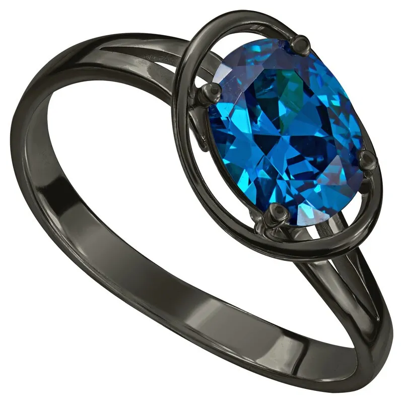 Серебряное кольцо с нанокристаллом, цвет синий сапфир - коллекция Фрейя, покрытие Черный Родий.