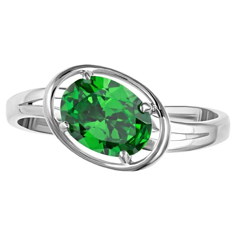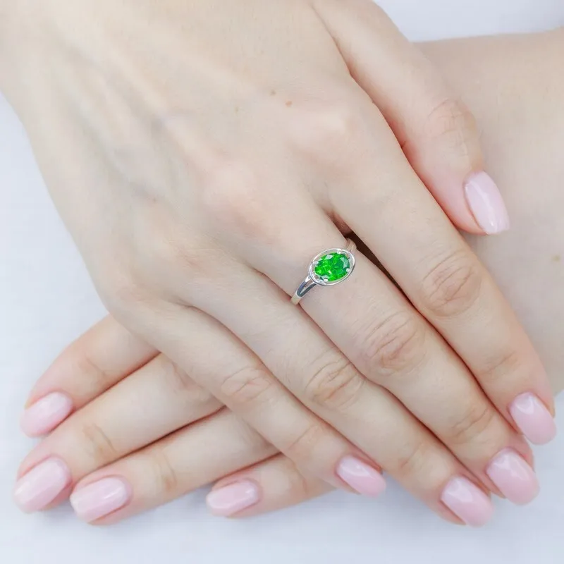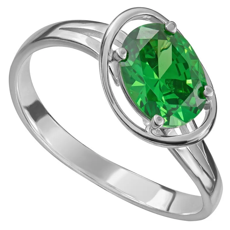 Серебряное кольцо с нанокристаллом, цвет зеленый изумруд - коллекция Фрейя. Средний вес изделия с камнями 2.13 гр. Размер главного камня: овал 6*8 мм. Нанокристалл - синтезированный ювелирный нанокристалл, превосходящий по блеску, преломлению света, твердости, плотности простой фианит. Все изделия собственного производства, гарантия 12 месяцев. Арт. 8281.