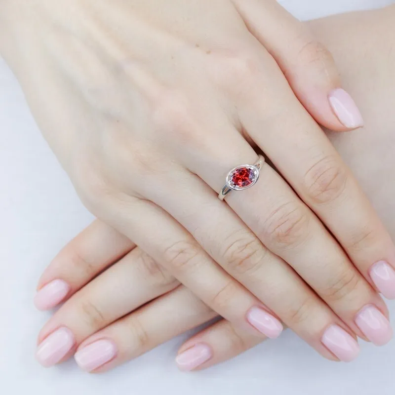 Серебряное кольцо с нанокристаллом, цвет красный - коллекция Фрейя. Средний вес изделия с камнями 2.13 гр. Размер главного камня: овал 6*8 мм. Нанокристалл - синтезированный ювелирный нанокристалл, превосходящий по блеску, преломлению света, твердости, плотности простой фианит. Все изделия собственного производства, гарантия 12 месяцев. Арт. 8285.