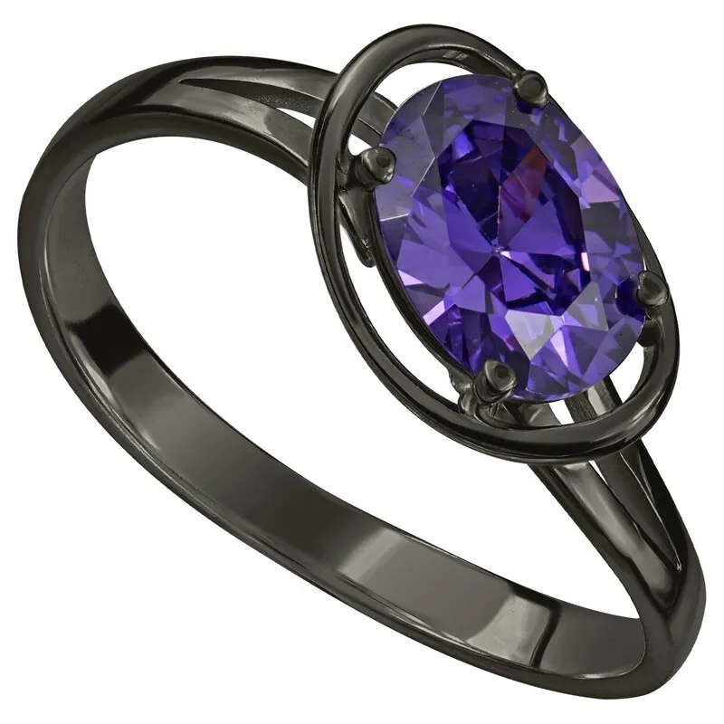 Серебряное кольцо с нанокристаллом, цвет фиолетовый - коллекция Фрейя, покрытие Черный Родий.