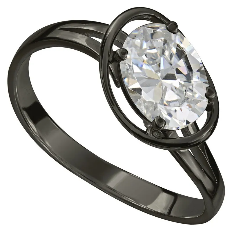 Серебряное кольцо с нанокристаллом, цвет белый - коллекция Фрейя, покрытие Черный Родий.