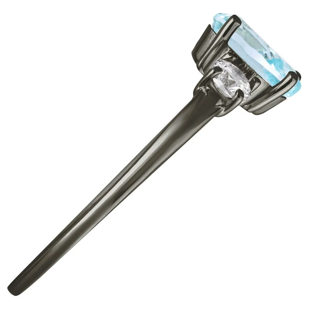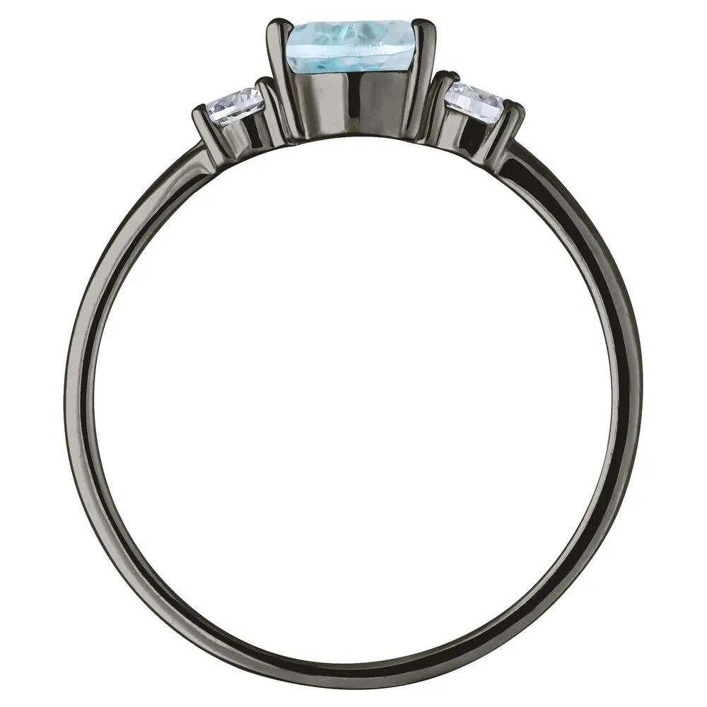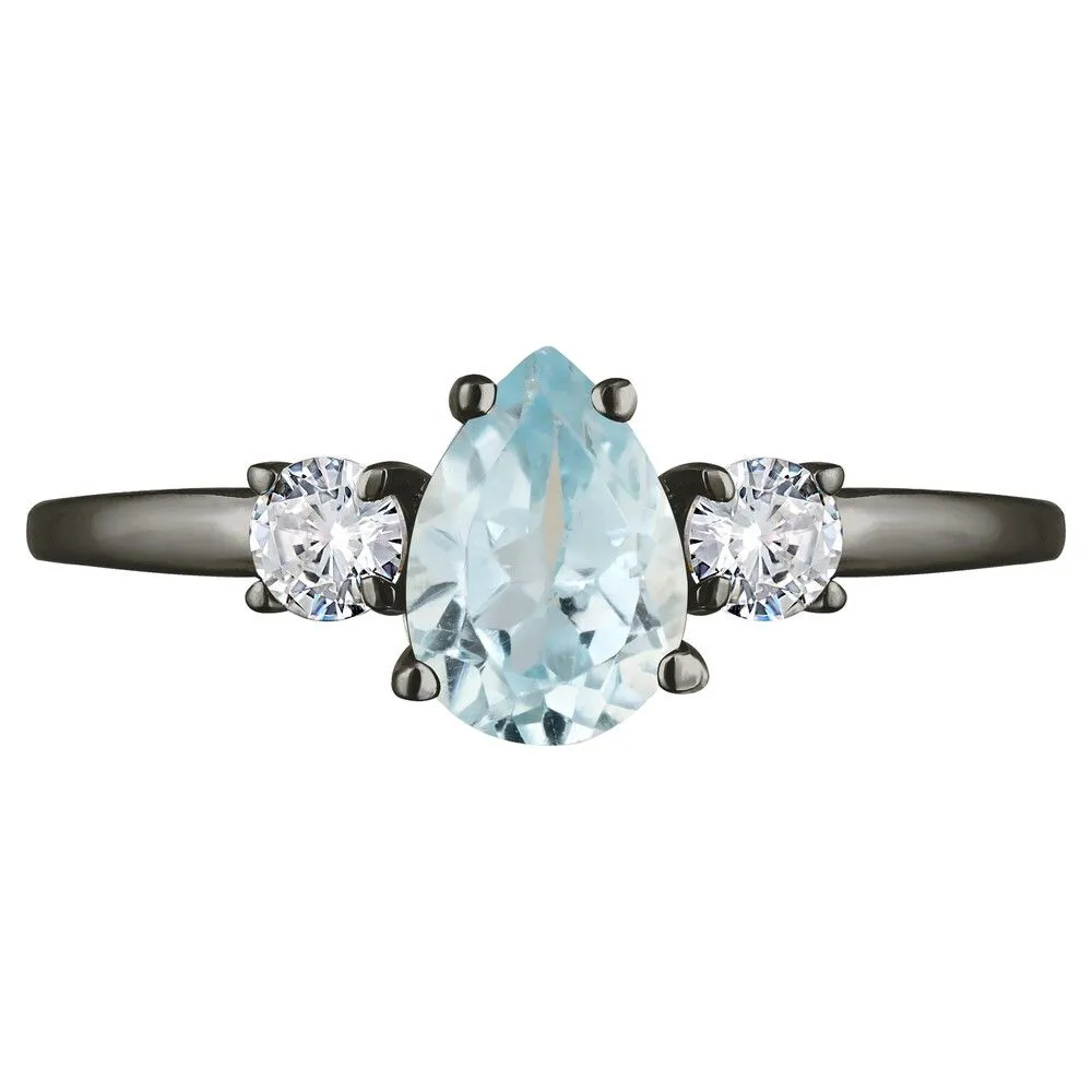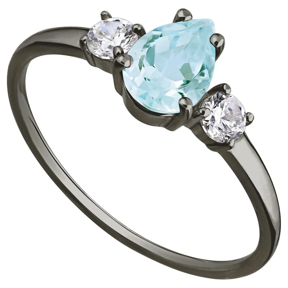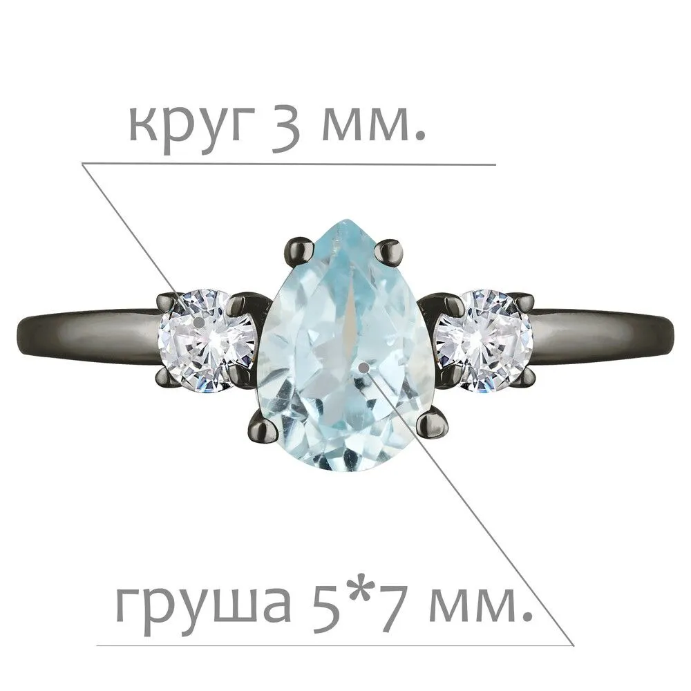 Серебряное кольцо с натуральным голубым топазом - коллекция Алсу (малая) / Черный Родий. Средний вес украшения с камнями 1.34 гр. Месторождение: Топаз (Намибия). Ювелирные вставки: Топаз (Натуральный) груша 5*7 мм., средний вес: 0.84 карат. Белый Нанокристалл круг 3 мм. Все изделия собственного производства и имеют гарантию 12 месяцев, к каждому изделию прилагается паспорт. Арт. 8810BR