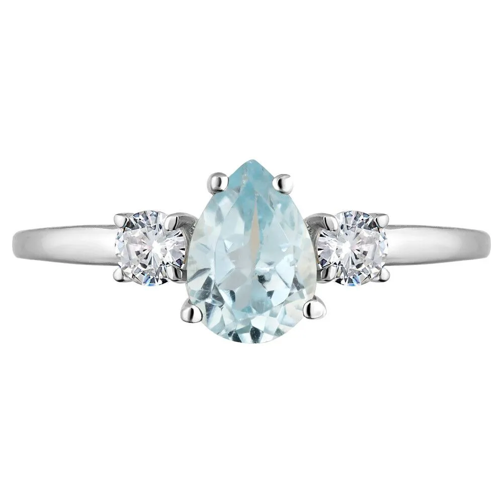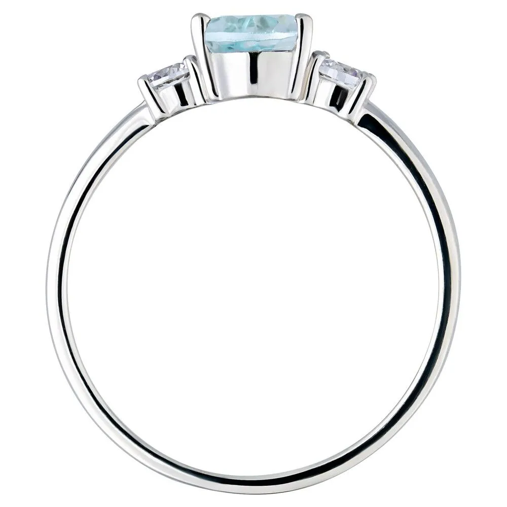 Серебряное кольцо с натуральным голубым топазом - коллекция Алсу (малая) / Без покрытия. Средний вес украшения с камнями 1.34 гр. Месторождение: Топаз (Намибия). Ювелирные вставки: Топаз (Натуральный) груша 5*7 мм., средний вес: 0.84 карат. Белый Нанокристалл круг 3 мм. Все изделия собственного производства и имеют гарантию 12 месяцев, к каждому изделию прилагается паспорт. Арт. 8810NP