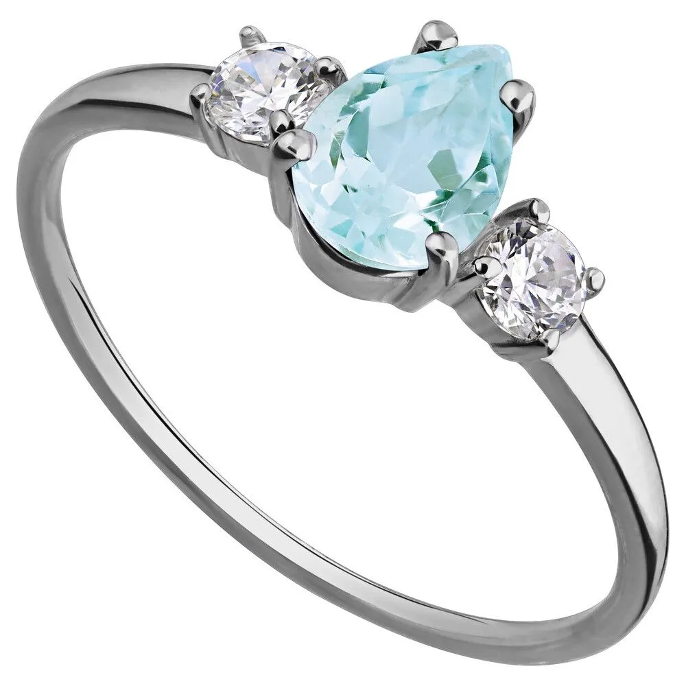 Серебряное кольцо с натуральным голубым топазом - коллекция Алсу (малая) / Палладий. Средний вес украшения с камнями 1.34 гр. Месторождение: Топаз (Намибия). Ювелирные вставки: Топаз (Натуральный) груша 5*7 мм., средний вес: 0.84 карат. Белый Нанокристалл круг 3 мм. Все изделия собственного производства и имеют гарантию 12 месяцев, к каждому изделию прилагается паспорт. Арт. 8810PD