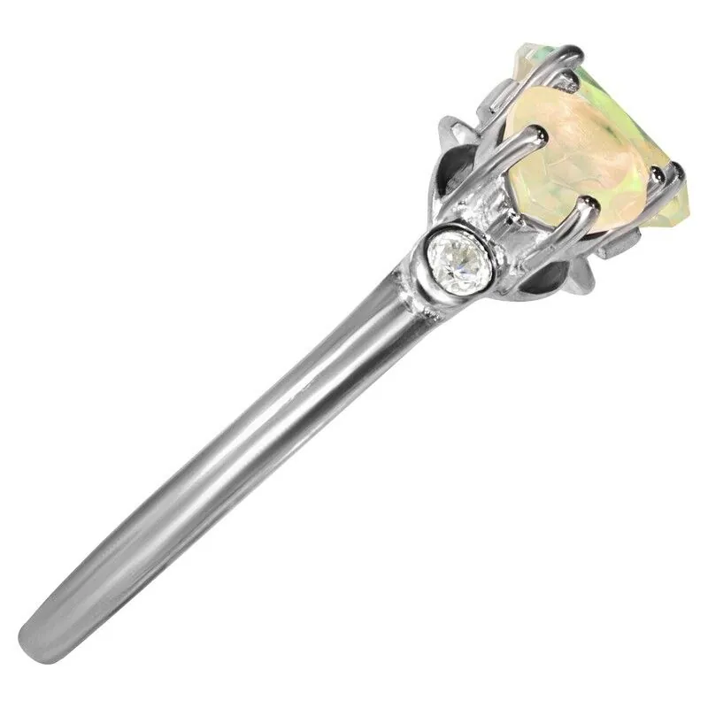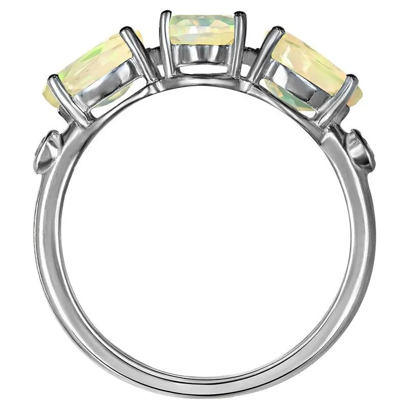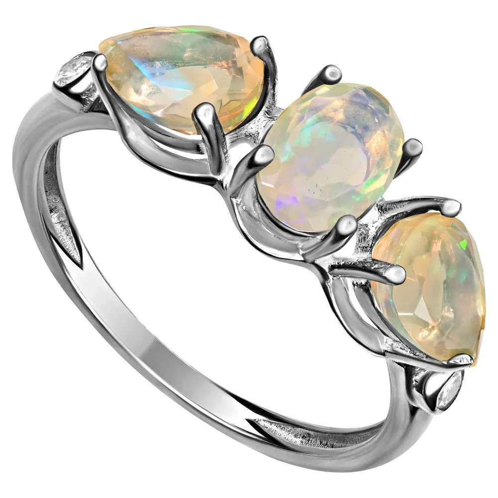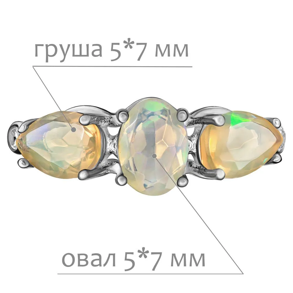 Серебряное кольцо с натуральным опалом (1 класс) - коллекция Сансара / покрытие Палладий.Средний вес украшения с камнями 2.33 гр.Месторождение(я): Опал (Эфиопия).Ювелирные вставки:Опал (Натуральный) овал 5*7 мм., средний вес: 0.46 карат.Опал (Натуральный) груша 5*7 мм., средний вес: 0.38 карат.Белый Нанокристалл круг 2 мм., средний вес: 0.06 карат.Все изделия собственного производства и имеют гарантию 12 месяцев. Арт. 8649PD. Опал – это благородный камень, известный ещё с древности. Ему приписывали разнообразные магические свойства. Окраска опала многовариантна, выделяют более ста типов. Он помогал справиться с порчей и сглазом, защищал от негативной энергетики, способствовал излечению мигреней. Как талисман для ребенка, становился защитником от дурных сил и заболеваний.