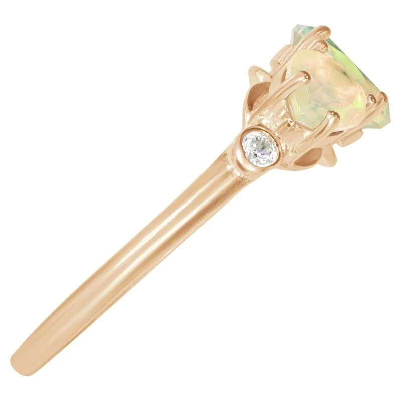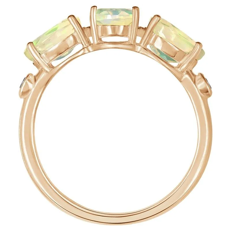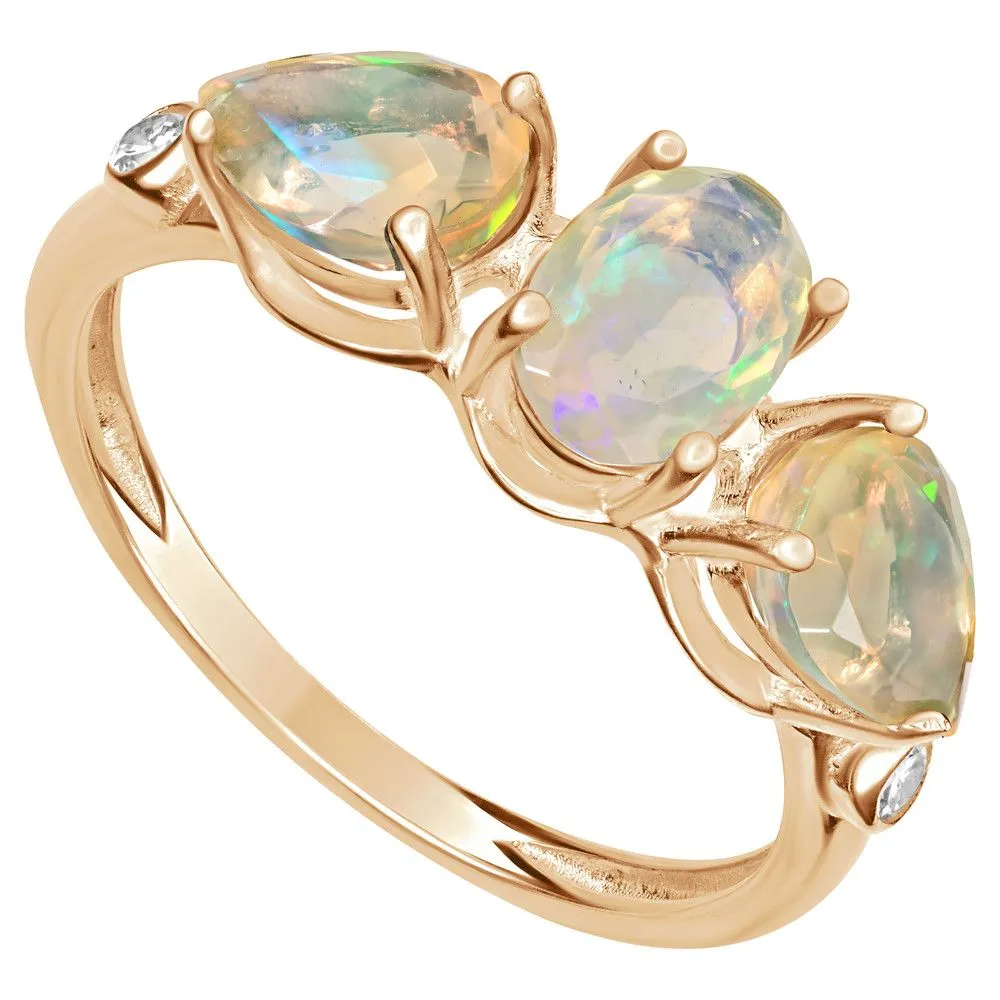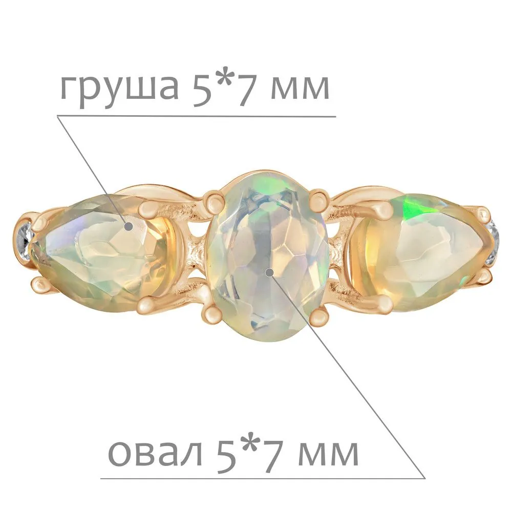 Серебряное кольцо с натуральным опалом (1 класс) - коллекция Сансара / покрытие Розовое Золото.Средний вес украшения с камнями 2.31 гр.Месторождение(я): Опал (Эфиопия).Ювелирные вставки:Опал (Натуральный) овал 5*7 мм., средний вес: 0.46 карат.Опал (Натуральный) груша 5*7 мм., средний вес: 0.38 карат.Белый Нанокристалл круг 2 мм., средний вес: 0.06 карат.Все изделия собственного производства и имеют гарантию 12 месяцев. Арт. 8649PG. Опал – это благородный камень, известный ещё с древности. Ему приписывали разнообразные магические свойства. Окраска опала многовариантна, выделяют более ста типов. Он помогал справиться с порчей и сглазом, защищал от негативной энергетики, способствовал излечению мигреней. Как талисман для ребенка, становился защитником от дурных сил и заболеваний.