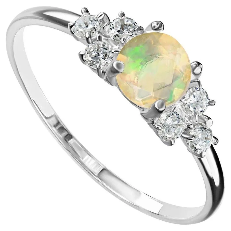 Серебряное кольцо с натуральным опалом (1 класс) - коллекция Нова / Без покрытия.Средний вес украшения с камнями 1.22 гр.Месторождение(я): Опал (Эфиопия).Ювелирные вставки:Опал (Натуральный) круг 5 мм., средний вес: 0.31 карат.Белый Нанокристалл круг 2 мм., средний вес: 0.06 карат.Все изделия собственного производства и имеют гарантию 12 месяцев. Арт. 8667NP. Опал – это благородный камень, известный ещё с древности. Ему приписывали разнообразные магические свойства. Окраска опала многовариантна, выделяют более ста типов. Он помогал справиться с порчей и сглазом, защищал от негативной энергетики, способствовал излечению мигреней. Как талисман для ребенка, становился защитником от дурных сил и заболеваний.