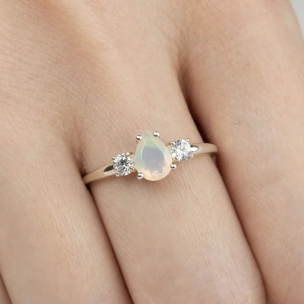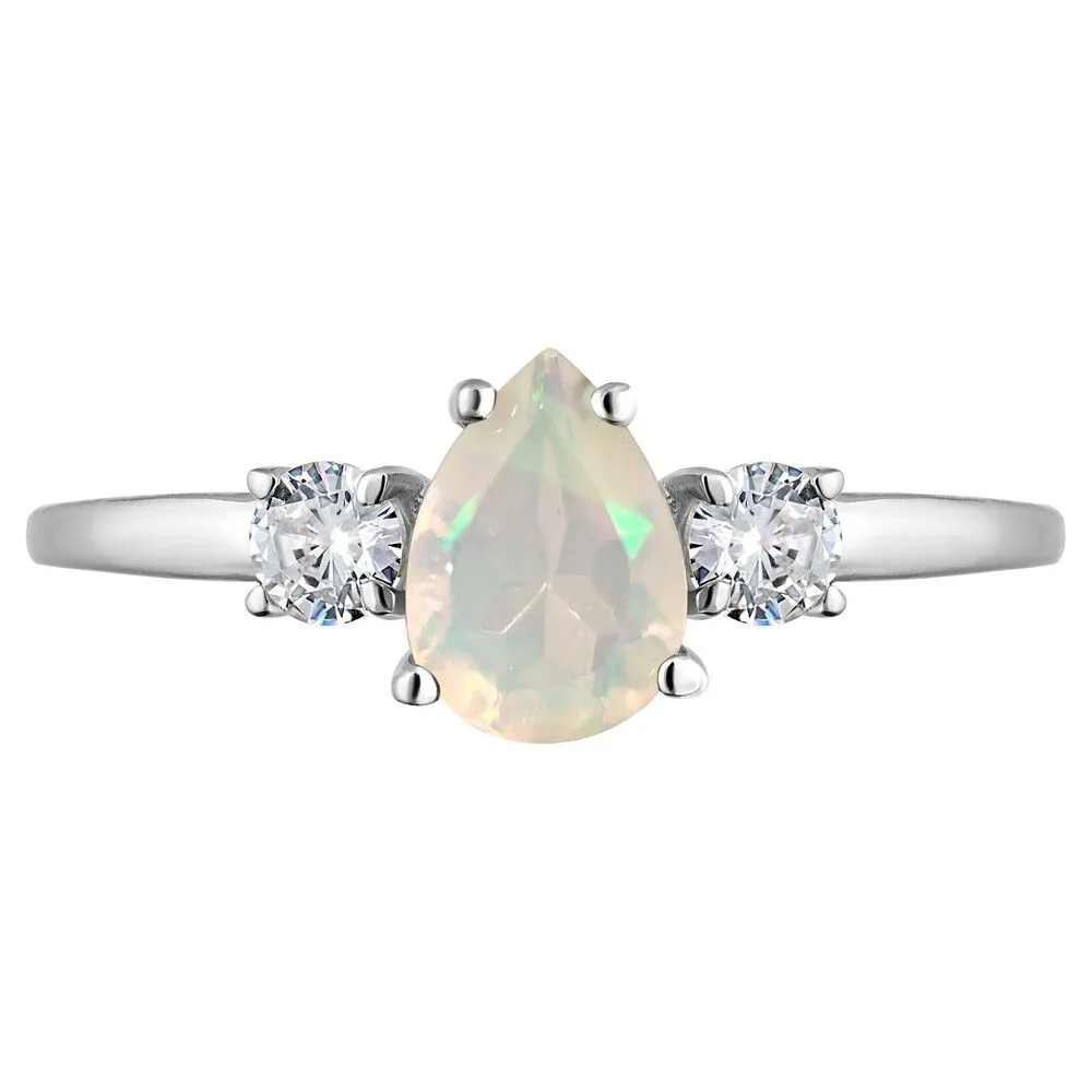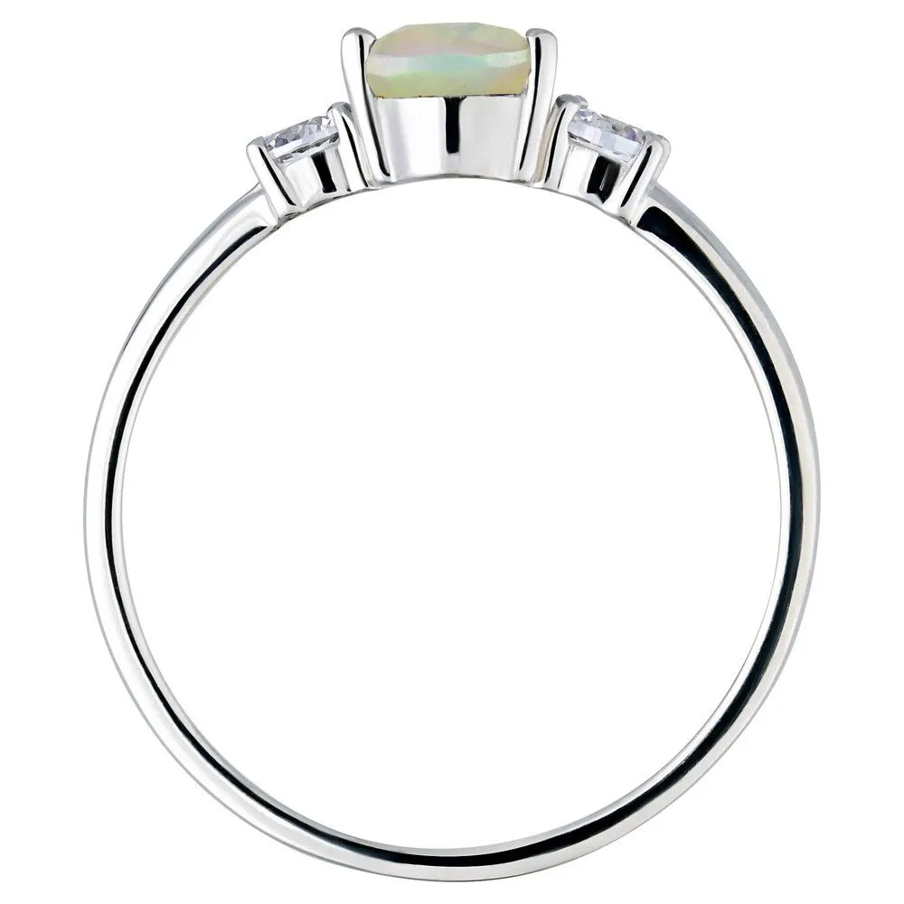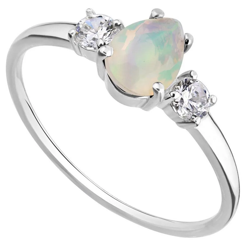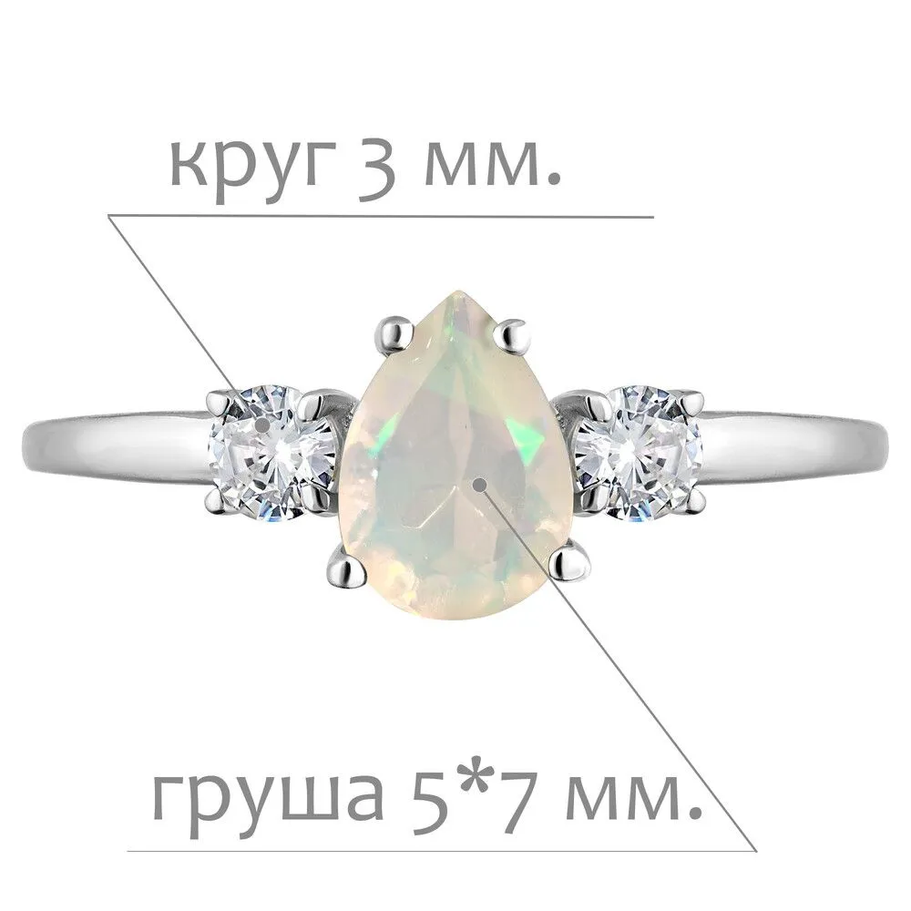 Серебряное кольцо с натуральным опалом (2 кл.) - коллекция Алсу (малая) / Без покрытия. Средний вес украшения с камнями 1.05 гр. Месторождение: Опал (Эфиопия). Ювелирные вставки: Опал (Натуральный) груша 5*7 мм., средний вес: 0.41 карат. Белый Нанокристалл круг 3 мм. Все изделия собственного производства и имеют гарантию 12 месяцев, к каждому изделию прилагается паспорт. Арт. 8914NP