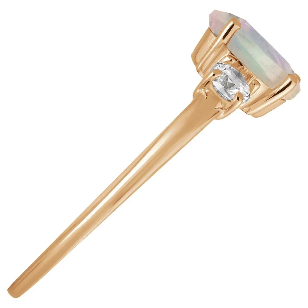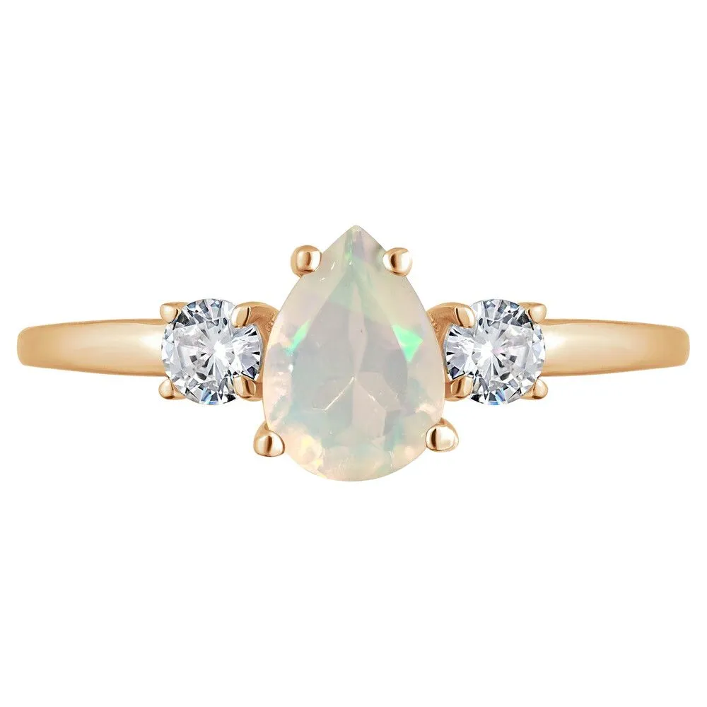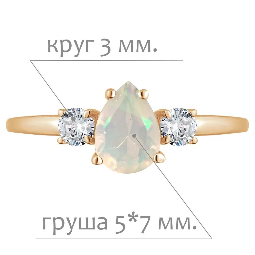 Серебряное кольцо с натуральным опалом (2 кл.) - коллекция Алсу (малая) / Розовое Золото. Средний вес украшения с камнями 1.05 гр. Месторождение: Опал (Эфиопия). Ювелирные вставки: Опал (Натуральный) груша 5*7 мм., средний вес: 0.41 карат. Белый Нанокристалл круг 3 мм. Все изделия собственного производства и имеют гарантию 12 месяцев, к каждому изделию прилагается паспорт. Арт. 8914PG