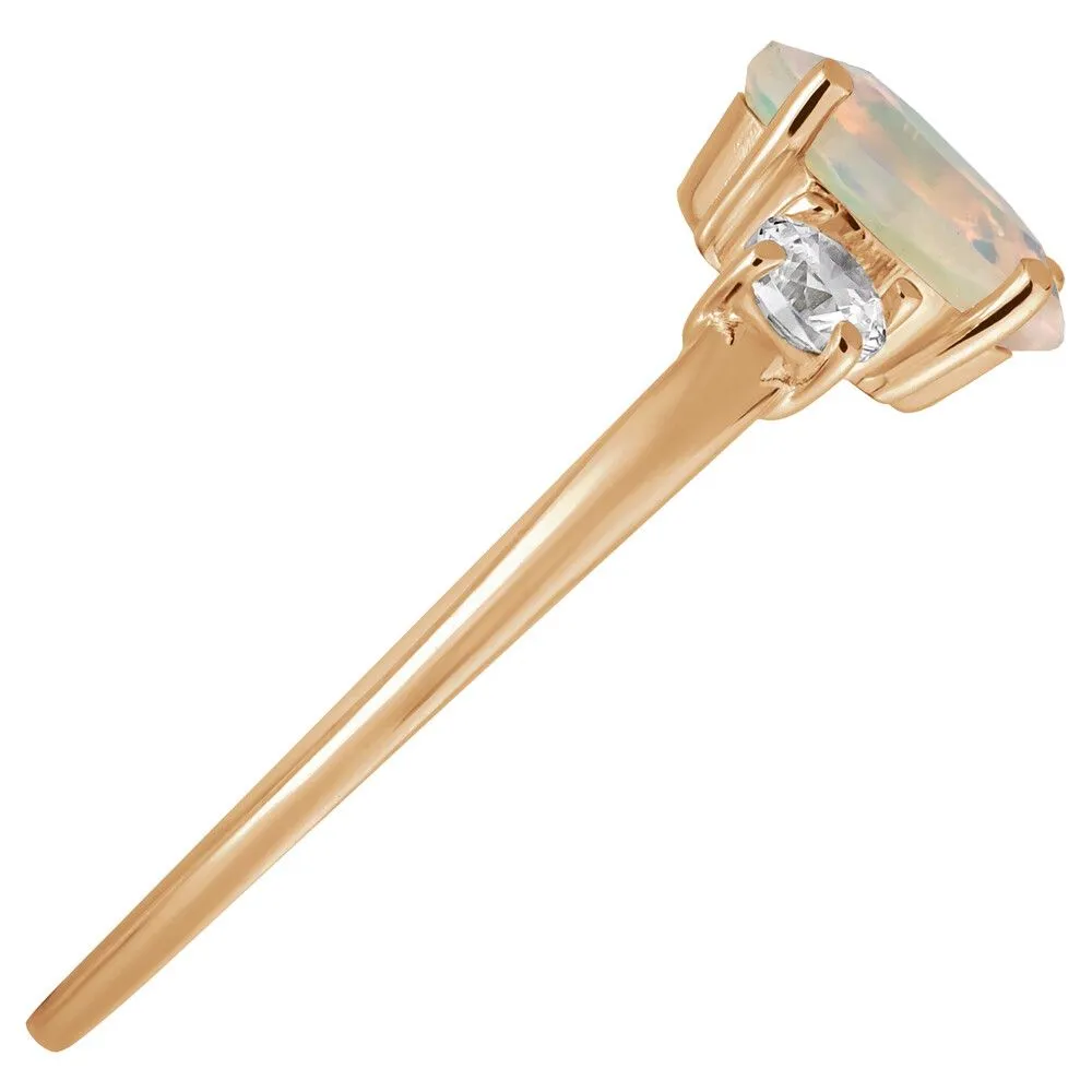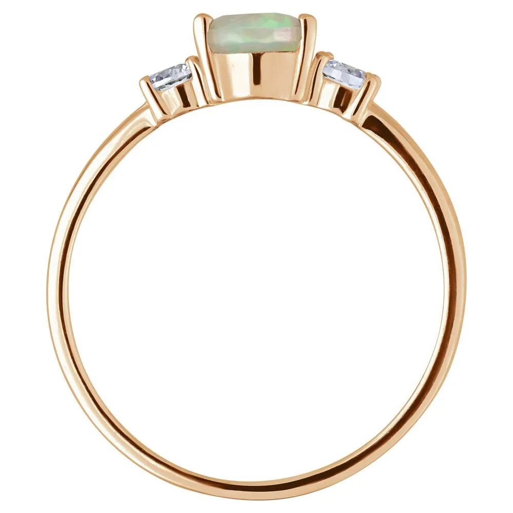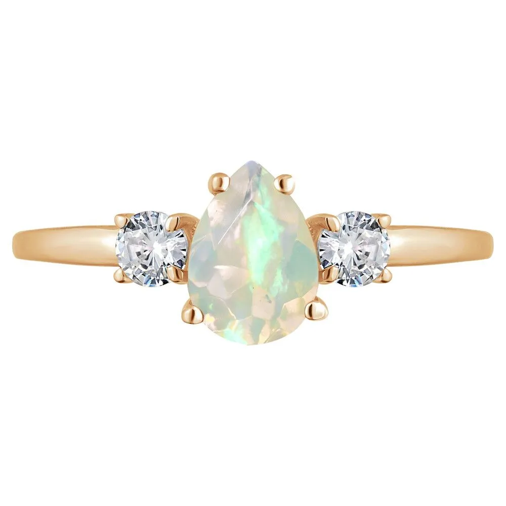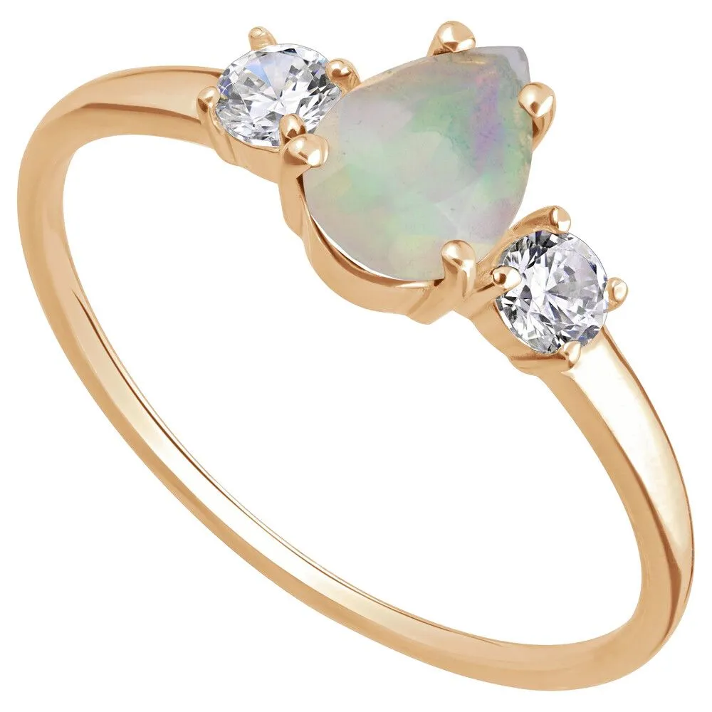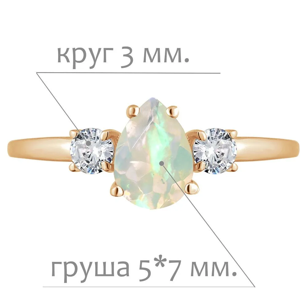 Серебряное кольцо с натуральным опалом (экстра кл.) - коллекция Алсу (малая) / Розовое Золото. Средний вес украшения с камнями 1.05 гр. Месторождение: Опал (Эфиопия). Ювелирные вставки: Опал (Натуральный) груша 5*7 мм., средний вес: 0.41 карат. Белый Нанокристалл круг 3 мм. Все изделия собственного производства и имеют гарантию 12 месяцев, к каждому изделию прилагается паспорт. Арт. 8915PG