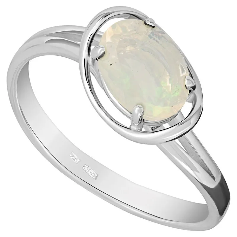 Серебряное кольцо с натуральным опалом (2 класс) - коллекция Фрейя / покрытие Белый Родий