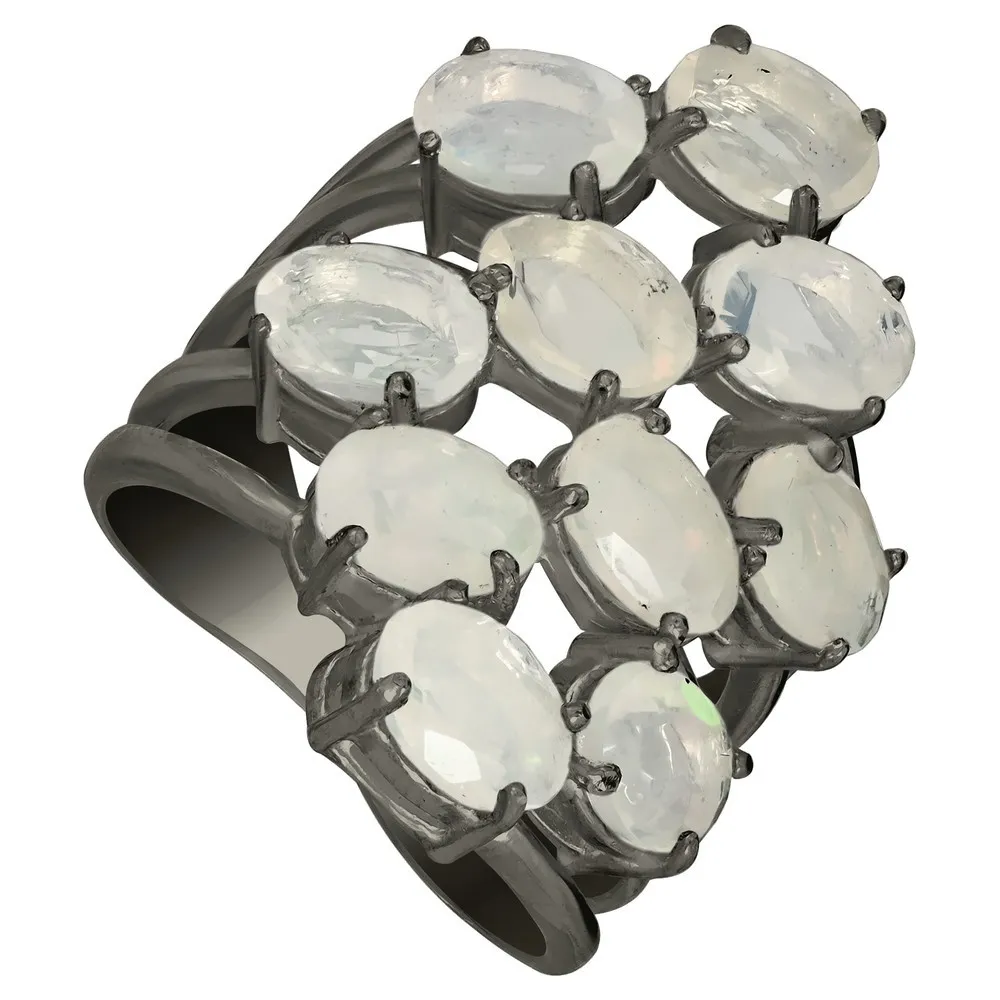 Серебряное кольцо с натуральным опалом (1 и 2 класс) - коллекция Аэлита, покрытие Черный Родий.