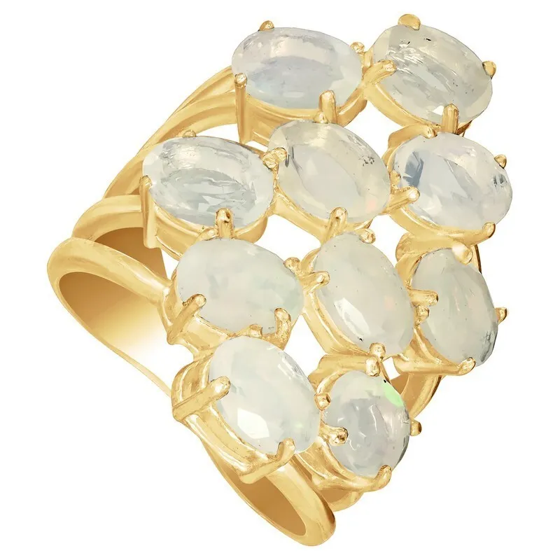 Серебряное кольцо с натуральным опалом (1 и 2 класс) - коллекция Аэлита. Серебряное кольцо 925 пробы с покрытием желтое золото. Цвет покрытия соответствует швейцарскому цветовому стандарту NIHS -FF24ct и цвету чистого золото 999.99. На последней фотографии мы разместили сравнительную фотографию 3 цвета золотого покрытия. Помимо предания золотого цвета Вашему изделию, тонкий слой золота защищает от окисления. Для более стойкого эффекта золочения и долговечности покрытия мы дополнительно наносим подслой палладия (Pd). Средний вес изделия с камнями 9.56 гр. Месторождение: Опал (Эфиопия). Опал (Натуральный) овал 5*7 мм., средний вес: 0.48 карат. Все изделия собственного производства, гарантия 12 месяцев. Арт. 7844