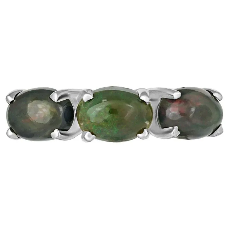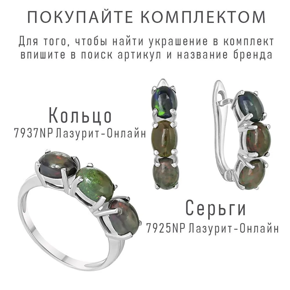 Серебряное кольцо с натуральным опалом (черным) - коллекция Муза / Без покрытия