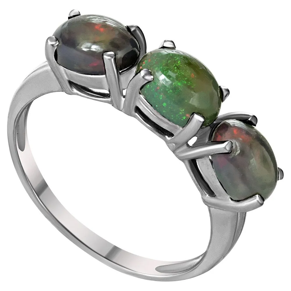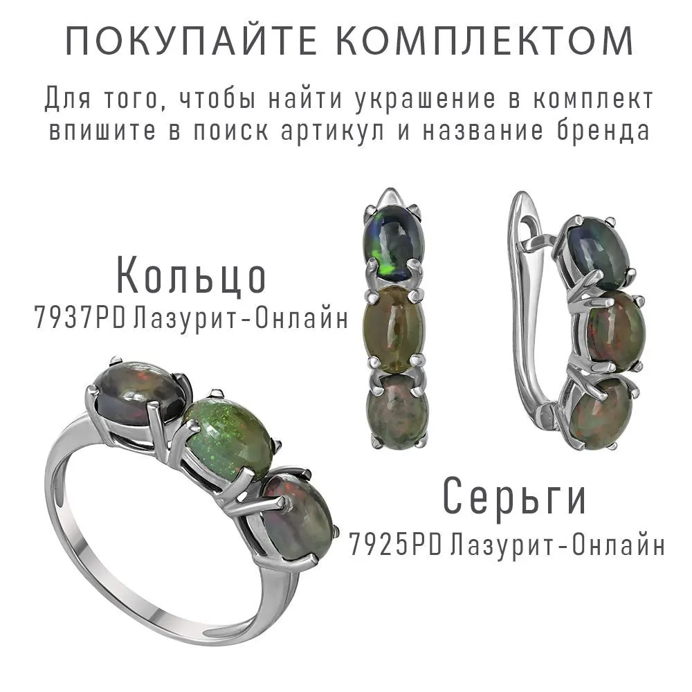 Серебряное кольцо с натуральным опалом (черным) - коллекция Муза / покрытие Палладий
