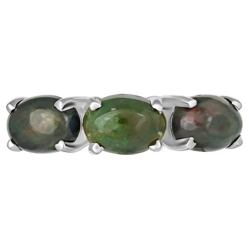 Серебряное кольцо с натуральным опалом (черным) - коллекция Муза. Средний вес изделия с камнями 2.51 гр. Месторождение(я): Опал (Эфиопия) Опал (Натуральный) овал 5*7 мм., средний вес: 0,51 карат. Размер лицевой части: 5*21 мм. Все изделия собственного производства и имеют гарантию 12 месяцев. Арт. 7937