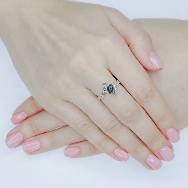 Серебряное кольцо с натуральным опалом (черным) - коллекция Тея / покрытие Чистое Серебро