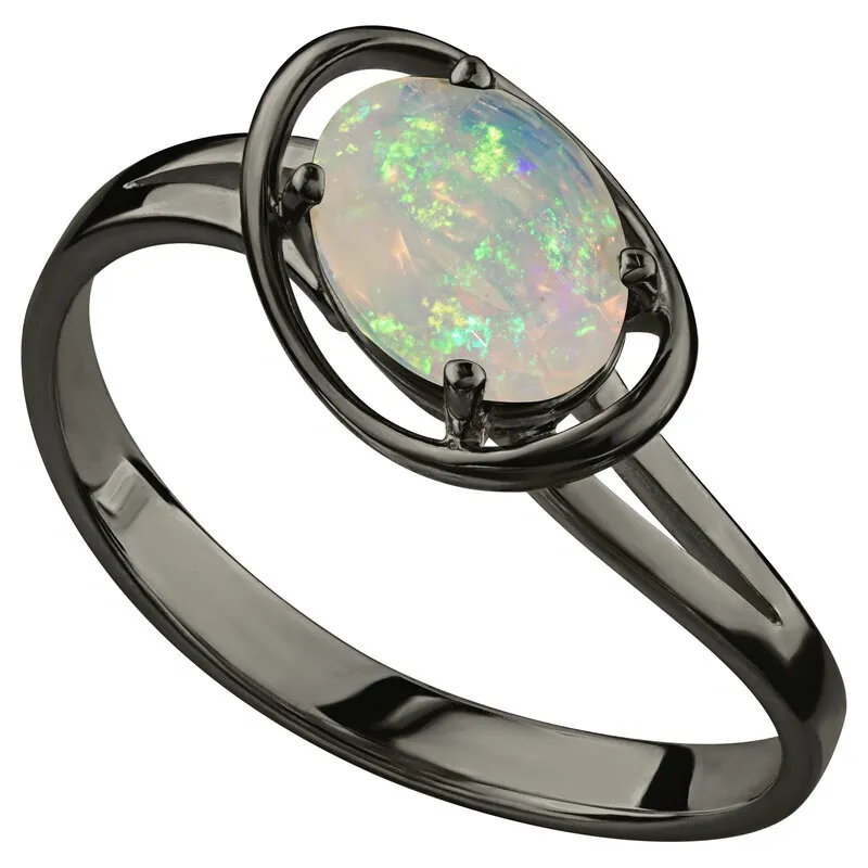 Серебряное кольцо с натуральным опалом (Экстра) - коллекция Фрейя, покрытие Черный Родий.
