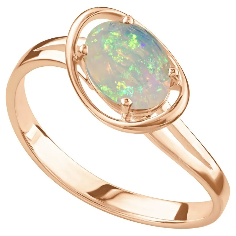 Серебряное кольцо с натуральным опалом (Экстра) - коллекция Фрейя. Серебряное кольцо 925 пробы с покрытием красное золото. Цвет покрытия соответствует швейцарскому цветовому стандарту NIHS -5N и цвету красного золота 585 в России. На последней фотографии мы разместили сравнительную фотографию 3 цвета золотого покрытия. Помимо предания золотого цвета Вашему изделию, тонкий слой золота защищает от окисления. Для более стойкого эффекта золочения и долговечности покрытия мы дополнительно наносим подслой палладия (Pd). Средний вес изделия с камнями 2.36 гр. Месторождение: Опал (Эфиопия). Опал (Натуральный) овал 6*8 мм., средний вес: 0.51 карат. Все изделия собственного производства, гарантия 12 месяцев. Арт. 8175
