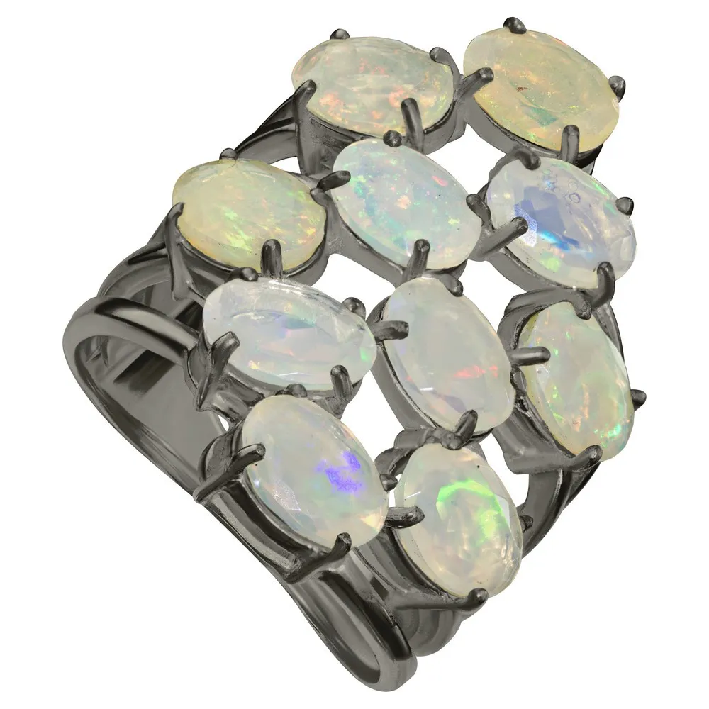 Серебряное кольцо с натуральным опалом (1 класс) - коллекция Аэлита, покрытие Черный Родий.