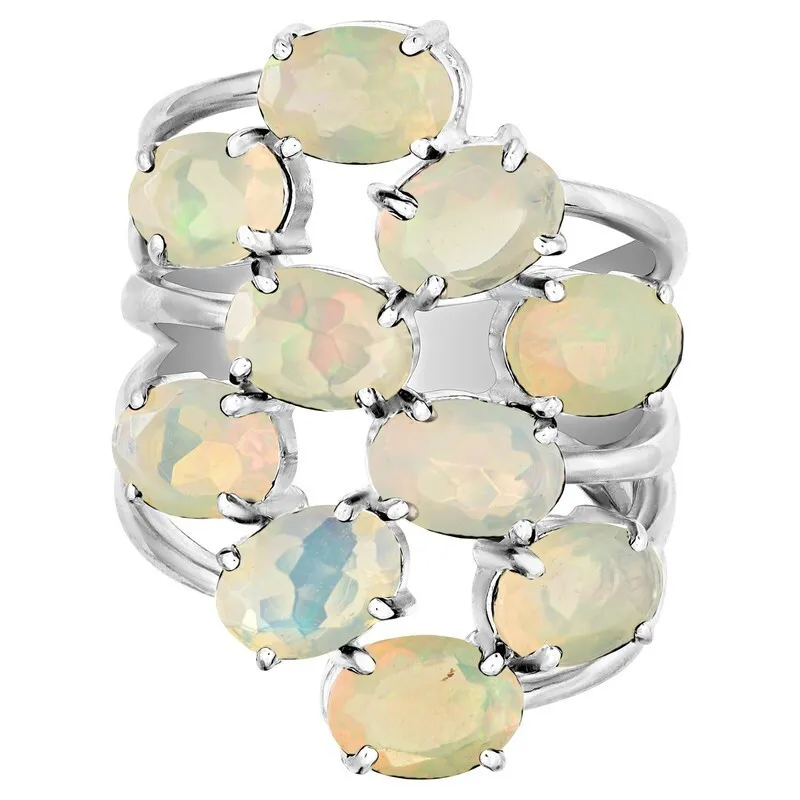 Серебряное кольцо с натуральным опалом (1 класс) - коллекция Аэлита. Средний вес изделия с камнями 9.56 гр. Месторождение: Опал (Эфиопия). Опал (Натуральный) овал 5*7 мм., средний вес: 0.46 карат. Все изделия собственного производства, гарантия 12 месяцев. Арт. 8177