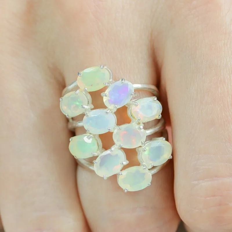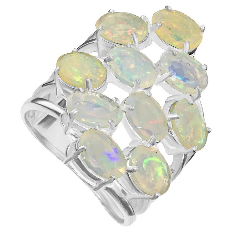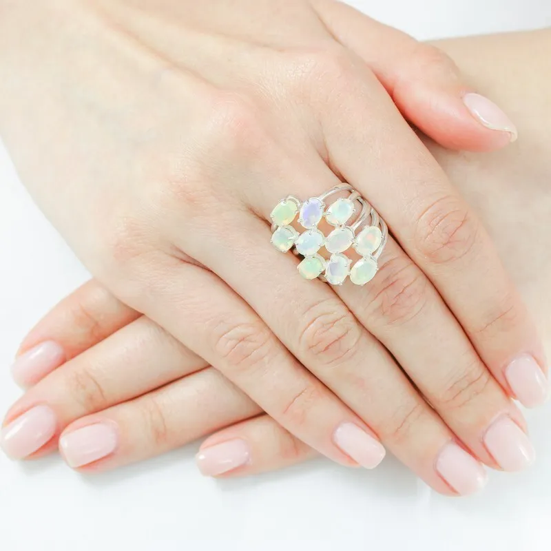 Серебряное кольцо с натуральным опалом (1 класс) - коллекция Аэлита. Средний вес изделия с камнями 9.56 гр. Месторождение: Опал (Эфиопия). Опал (Натуральный) овал 5*7 мм., средний вес: 0.46 карат. Все изделия собственного производства, гарантия 12 месяцев. Арт. 8177
