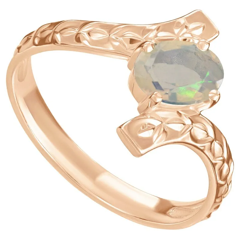 Серебряное кольцо с натуральным опалом (1 класс) - коллекция Тея. Серебряное кольцо 925 пробы с покрытием красное золото. Цвет покрытия соответствует швейцарскому цветовому стандарту NIHS -5N и цвету красного золота 585 в России. На последней фотографии мы разместили сравнительную фотографию 3 цвета золотого покрытия. Помимо предания золотого цвета Вашему изделию, тонкий слой золота защищает от окисления. Для более стойкого эффекта золочения и долговечности покрытия мы дополнительно наносим подслой палладия (Pd). Средний вес изделия с камнями 2.47 гр. Месторождение: Опал (Эфиопия). Опал (Натуральный) овал 5*7 мм., средний вес: 0.46 карат. Все изделия собственного производства, гарантия 12 месяцев. Арт. 8178
