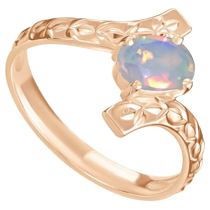 Серебряное кольцо с натуральным опалом (Экстра) - коллекция Тея. Серебряное кольцо 925 пробы с покрытием красное золото. Цвет покрытия соответствует швейцарскому цветовому стандарту NIHS -5N и цвету красного золота 585 в России. На последней фотографии мы разместили сравнительную фотографию 3 цвета золотого покрытия. Помимо предания золотого цвета Вашему изделию, тонкий слой золота защищает от окисления. Для более стойкого эффекта золочения и долговечности покрытия мы дополнительно наносим подслой палладия (Pd). Средний вес изделия с камнями 2.47 гр. Месторождение: Опал (Эфиопия). Опал (Натуральный) овал 5*7 мм., средний вес: 0.46 карат. Все изделия собственного производства, гарантия 12 месяцев. Арт. 8179