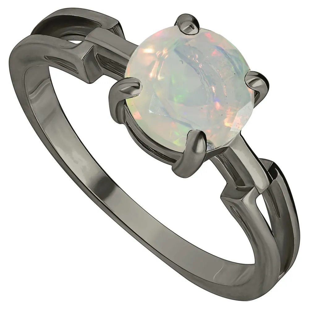 Серебряное кольцо с натуральным опалом (Экстра) - коллекция Классик, покрытие Черный Родий.