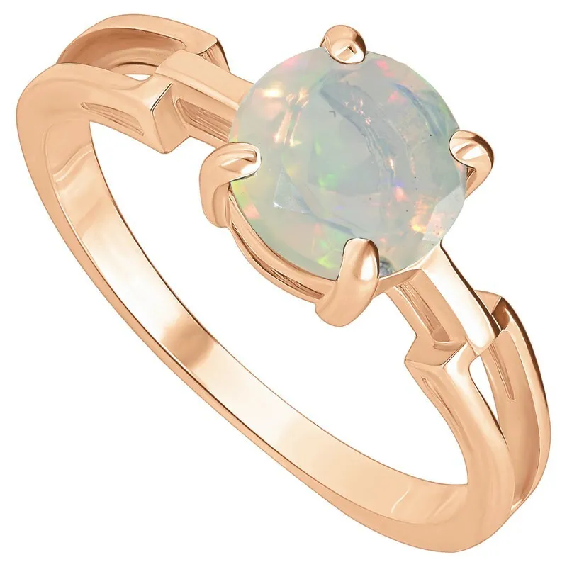 Серебряное кольцо с натуральным опалом (Экстра) - коллекция Классик. Серебряное кольцо 925 пробы с покрытием красное золото. Цвет покрытия соответствует швейцарскому цветовому стандарту NIHS -5N и цвету красного золота 585 в России. На последней фотографии мы разместили сравнительную фотографию 3 цвета золотого покрытия. Помимо предания золотого цвета Вашему изделию, тонкий слой золота защищает от окисления. Для более стойкого эффекта золочения и долговечности покрытия мы дополнительно наносим подслой палладия (Pd). Средний вес изделия с камнями 1.88 гр. Месторождение: Опал (Эфиопия). Опал (Натуральный) круг 7 мм., средний вес: 0.61 карат. Все изделия собственного производства, гарантия 12 месяцев. Арт. 8181