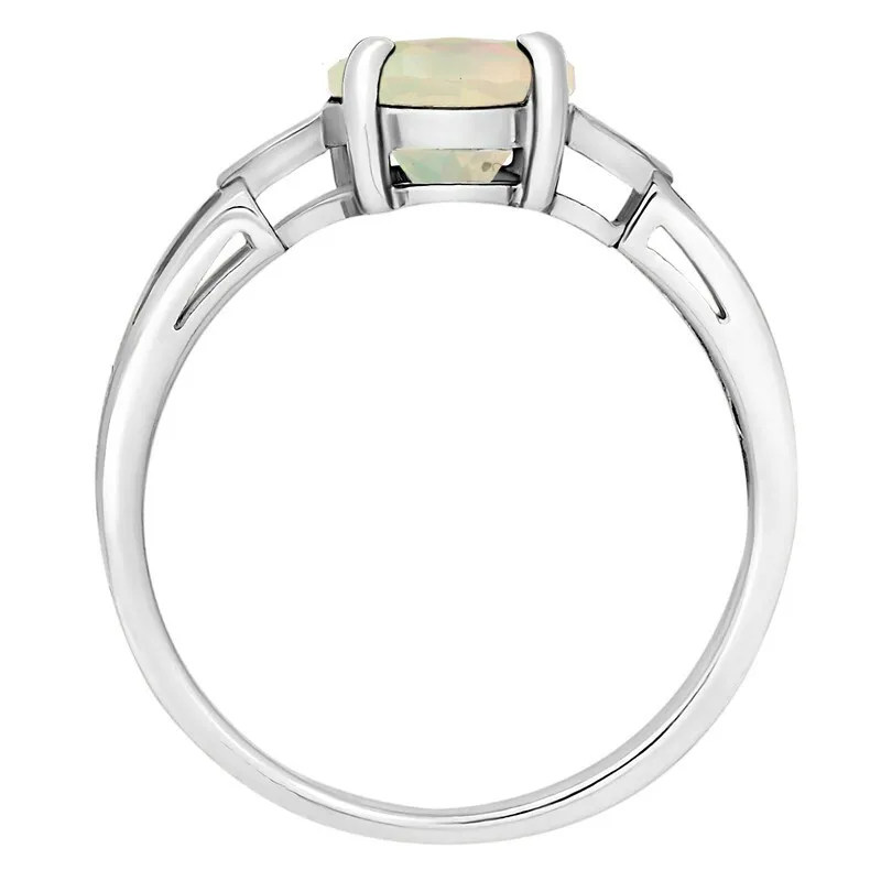 Серебряное кольцо с натуральным опалом (Экстра) - коллекция Классик / покрытие Белый Родий