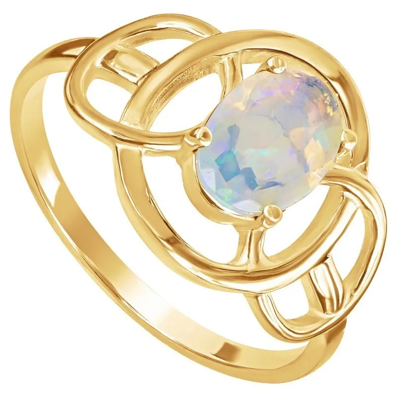 Серебряное кольцо с натуральным опалом - коллекция Юнона. Серебряное кольцо 925 пробы с покрытием желтое золото. Цвет покрытия соответствует швейцарскому цветовому стандарту NIHS -FF24ct и цвету чистого золото 999.99. На последней фотографии мы разместили сравнительную фотографию 3 цвета золотого покрытия. Помимо предания золотого цвета Вашему изделию, тонкий слой золота защищает от окисления. Для более стойкого эффекта золочения и долговечности покрытия мы дополнительно наносим подслой палладия (Pd). Средний вес изделия с камнями 2.41 гр. Месторождение: Опал (Эфиопия). Опал (Натуральный) овал 6*8 мм., средний вес: 0.51 карат. Все изделия собственного производства, гарантия 12 месяцев. Арт. 8414. Опал – это благородный камень, известный ещё с древности. Ему приписывали разнообразные магические свойства. Окраска опала многовариантна, выделяют более ста типов. Он помогал справиться с порчей и сглазом, защищал от негативной энергетики, способствовал излечению мигреней. Как талисман для ребенка, становился защитником от дурных сил и заболеваний.