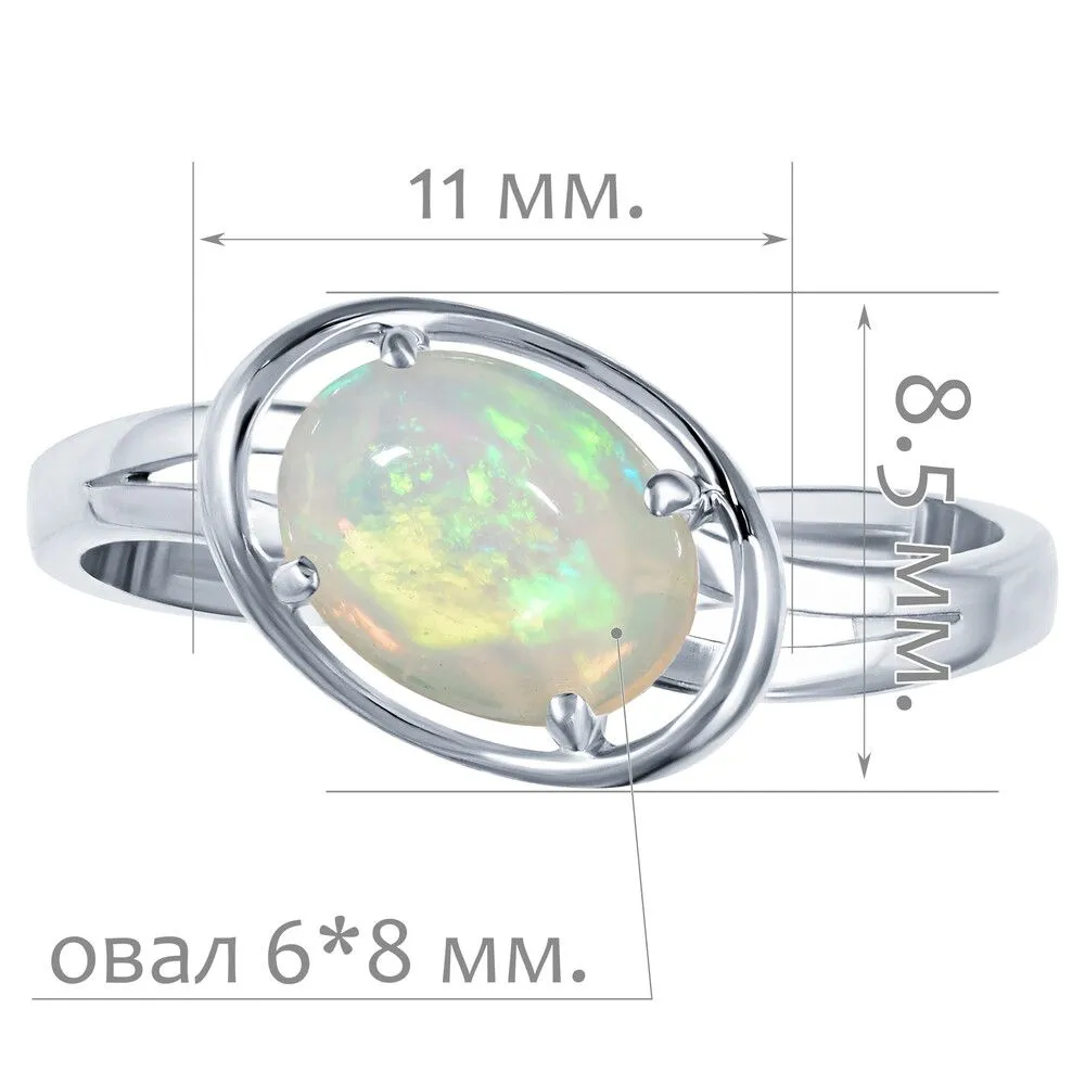 Серебряное кольцо с натуральным опалом (каб.) - коллекция Фрейя / Чистое Серебро. Средний вес украшения с камнями 1.79 гр. Месторождение: Опал (Эфиопия). Ювелирные вставки: Опал (Натуральный) овал 6*8 мм., средний вес: 0.75 карат. Все изделия собственного производства и имеют гарантию 12 месяцев, к каждому изделию прилагается паспорт. Арт. 8917AG